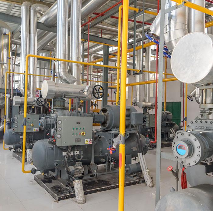 适用于各类螺旋速冻机、隧道式单冻机、风冷型速冻库等制冷系统,或将原氨冷库排管更换成氟用排管系统,改造后的制冷系统具有能效比高、系统稳定、管理方便等特点。